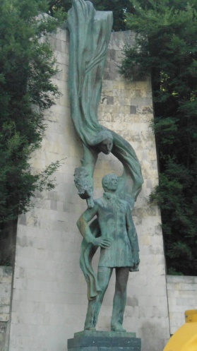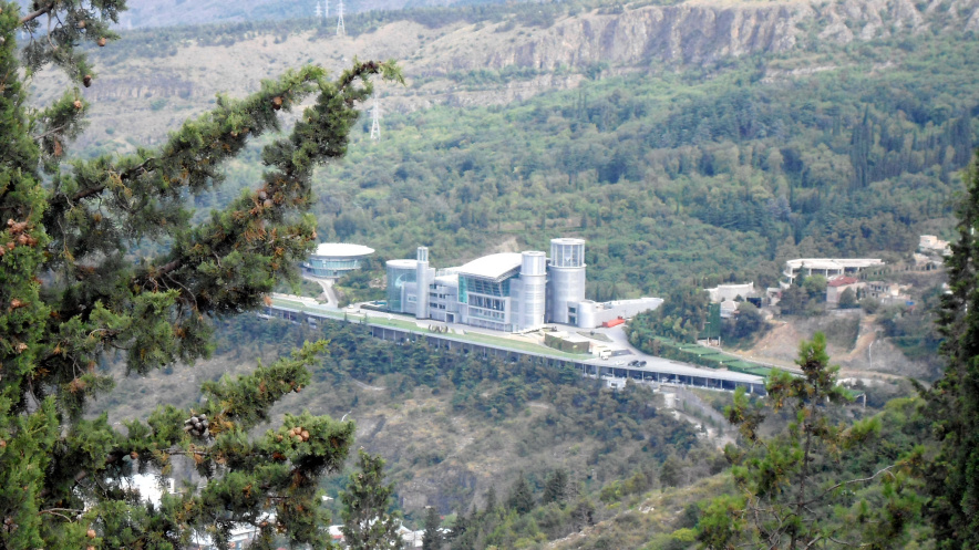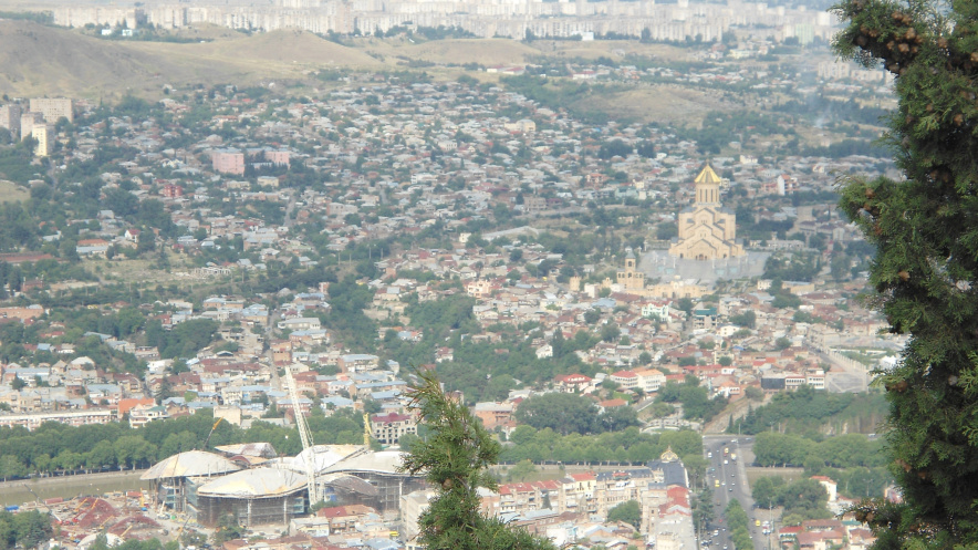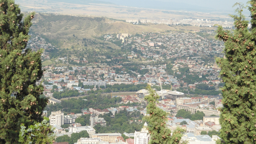 При подъезде к парку Тимури предлагает продемонстрировать нам магнитную аномалию – участок дороги, где происходят необъяснимые вещи. Горка, автобус спускается вниз. Проверяем. Водитель сбрасывает скорость, идем на холостом ходу. Автобус внезапно катится назад. То есть в обратную сторону, поднимаясь вверх…Смотровая площадка: дом Юстиции в форме цветка, самый большой ресторан Тбилиси, церковь высотой 94м, дворец президента, стадион и прочие красоты.