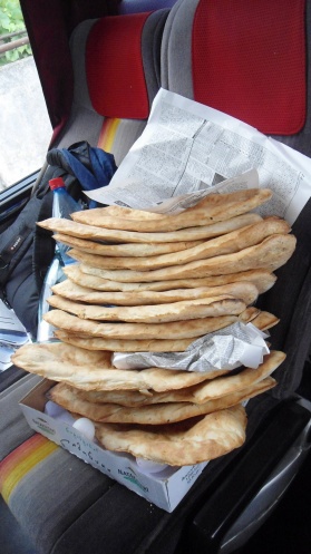 Народ в автобусе погрустнел, несмотря на то, что среди нас - именинница, т.е. к баклажке вина есть прекрасный повод. Пить не охота, есть - тоже. Дорога длиной в 36 часов тушит любой оптимистический запал. Пытаемся спать, читать, есть лобиане, хотя изделия из теста одним своим видом уже вызывают тоску по украинскому борщу с мясными ребрышками. Остановки плановые: на перевале скупаем у местной бабульки все запасы чурчхелы (самые вкусные – с грецким орехом!), делаем месячную выручку одним автобусом, нас провожают восторженно, как артистов)))