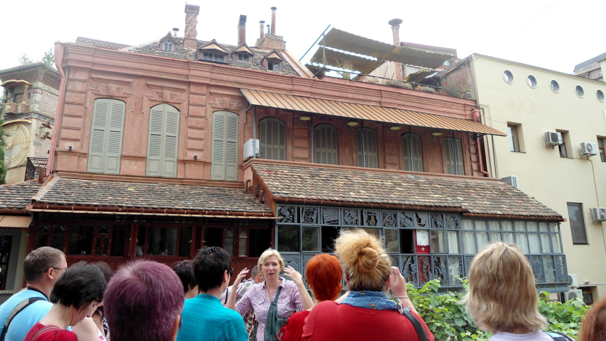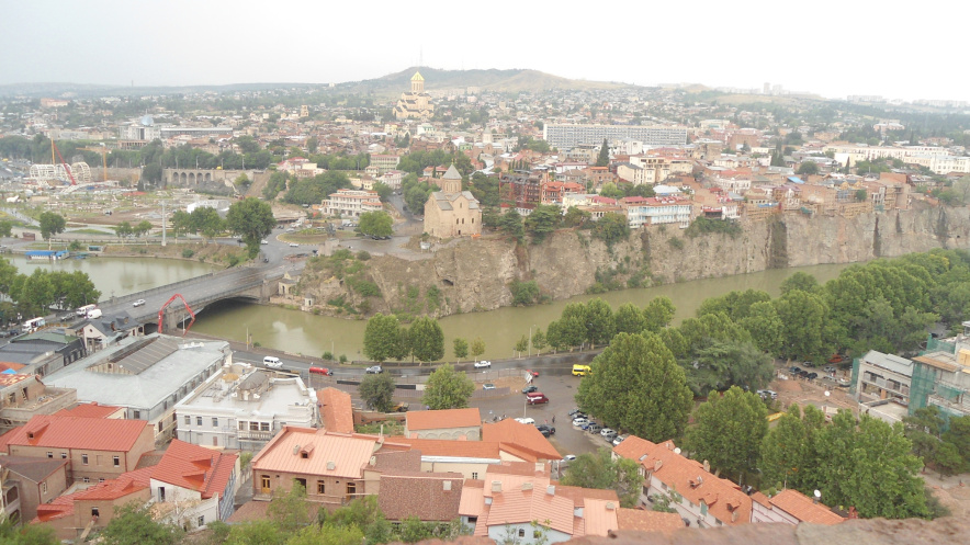 В условленном месте встречаемся с экскурсоводом Еленой (украинка, вышедшая замуж за грузина), гуляем по Тбилиси. Она знает историю каждого памятника, мостика, буквально каждого угла в этом городе. Заслушиваемся многочисленными легендами, поднимаемся вверх к церкви, отмечаем столичные контрасты: красивые кафешки и дети-попрошайки; охраняемый президентский дворец и убогие соседние дома с сетками от кровати на окнах (если верить Елене, на презентацию своего поместья президент позвал в гости всех соседей)