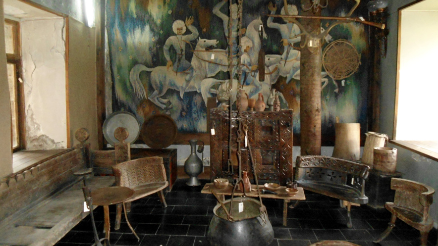 Делаем памятные снимки и, пока небеса не разгневались и дорогу не размыло, съезжаем вниз. После обеда идем гулять по поселку, заходим в музей этого самого Степана, покупаем билет и… весь двухэтажный музей в нашем распоряжении. Видно, что хозяйская рука не касалась экспонатов со времен Второй мировой. За 2 лари (10 грн) можно везде ходить, фотографироваться, касаться предметов. Все по очереди пытаемся изобразить Моцарта и извлечь звуки из старинного инструмента с залипшими клавишами. Гуляем дальше, находим рынок с ароматными персиками, абрикосами (все по 1 лари за 1 кг). Покупаем, моем, едим. Все фрукты привозные, т.к. в этой местности особенная погода, и в середине июля на здешних деревьях только начинает краснеть черешня. Люди, в целом, живут бедно. Об этом свидетельствуют и экономия электричества (если в магазин заходит покупатель, тогда продавец включает свет, а так сидит в полутьме), и внешний вид местных. Но это никак не отражается на пресловутом грузинском гостеприимстве.