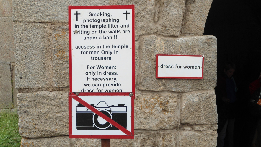 Надеваем балахоны и платки – только в таком виде женщина может зайти в церковь.