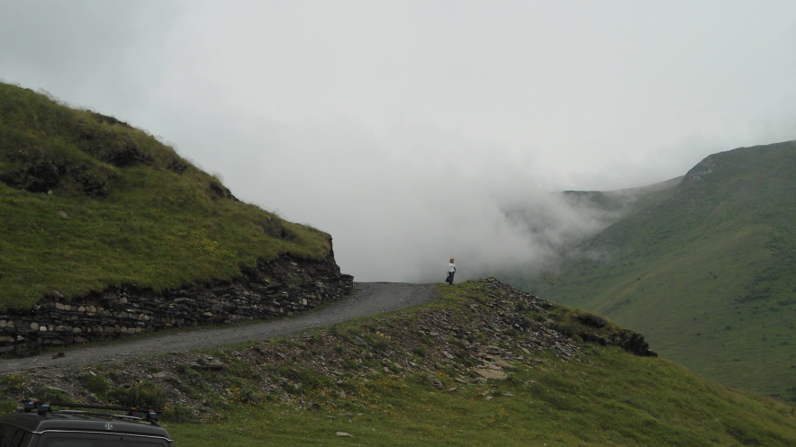 Идет дождь, собираемся под крышей у Генри, смотрим на мокнущие палатки, слушаем бесконечные тосты, пьем. Появляются иностранцы, с помощью чачи знакомимся и налаживаем интернациональный язык. Элизабет (итальянка) с мужем (голландцем) едят французский супчик. Макс всех угощает, зовет американца, но тот прячется внутри дома за компьютером. Удивляемся, как много туристов съехалось в этот горный аул. Здесь и американцы, и итальянцы, и поляки, и голландцы, и эстонцы. С рюкзаками и туда же, к церкви. Знакомимся с российскими дельтапланеристами (живущими здесь же, у Генри), которые колесят по Грузии, останавливаются то тут, то там и зарабатывают себе на жизнь любимым делом.
