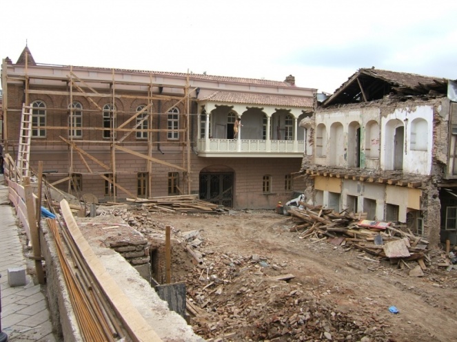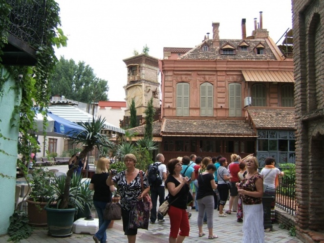 красивейший современный парк с поющим фонтаном и сверкающим мостом (его называют по-разному: Мост Любви, Мост Мира) и неосвещенные вонючие подземные переходы; изысканный театр Марионеток, улица ресторанов и горы строительного мусора. Вообще, такое ощущение, что строится не только Тбилиси, а вся страна.