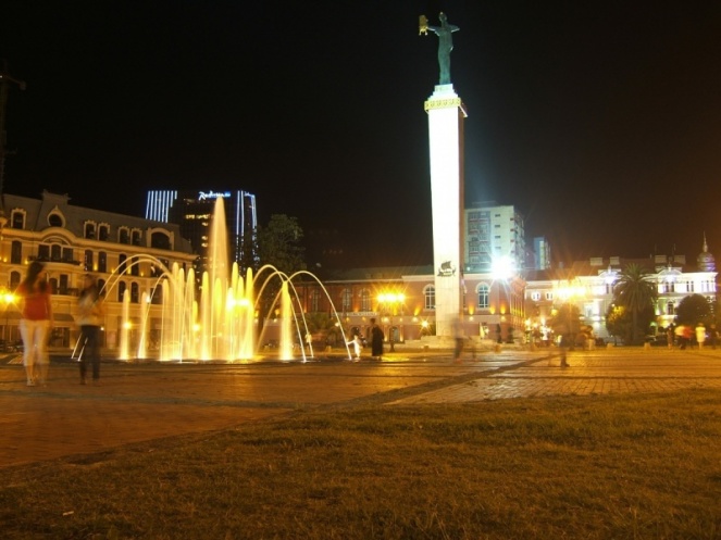 Тбилиси нас встретил дождем. Ищем площадь Свободы. Там, по идее, нас ожидает тбилисский парень Тимури для экскурсии и организации поселения. Максим ему звонит: «Мы проезжаем памятник какому-то дядьке на коне. Куда дальше?» В ответ: «Какой дядька? Это памятник Давиду III, Давид – царь Грузии…» и это при роуминге 12 грн/мин! Просим рассказать о достопримечательностях при встрече, ищем новый ориентир и, в конечном счете, попадаем на площадь Свободы с опозданием в 7 минут. Пройдя путь в полторы тысячи километров, мы прибываем на площадь в 14.07 и … ждем Тимури еще сорок минут! При дальнейшем знакомстве с грузинами выяснилось, что они никогда не спешат. Ну, нет у них в характере такой скоростной черты)))
