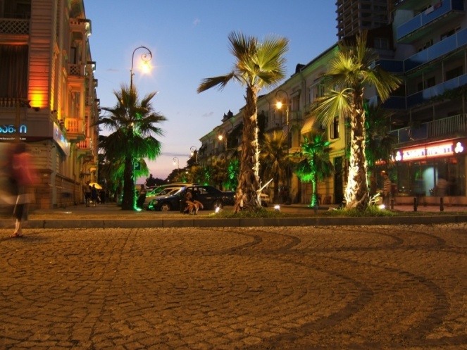 Город искрится и сверкает, похож на добротный европейский курорт. Велосипедные дорожки, пешеходные зоны, парковые аллеи, множество гуляющих туристов. Стройки есть, но пейзаж не портят (не так густо, как в других городах Грузии). Фотаемся, снимаем видео.