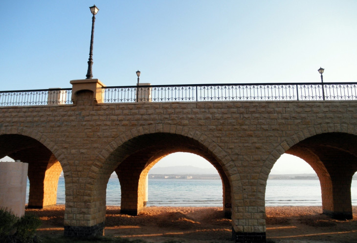 Пирс Сахл Хашиш: находится непосредственно рядом с «Затонувшим городом» и уходит на 250 метров в море. В наземной части пирса (под ним) можно прогуляться по «галерее арок» (одно из излюбленных мест для фотографирования туристов). А верхняя часть – достаточно широкая и удобная не только для пеших прогулок, но и для поездок на велосипедах. В самой дальней части стоят скамеечки, сидя на которых можно любоваться морем или разноцветными огнями побережья после заката.