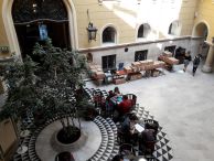 Библиотека шикарна. Витые лестницы, лепка, обилие золота, огромные люстры... Что тут сказать, дворец – он дворец и есть. Но не само убранство помещений меня впечатлило. Вернее, не столько оно, сколько доступность этого великолепия для всех посетителей. Нигде нет табличек, типа «не садиться» или «руками не трогать». Среди всей этой красоты сидят студенты и занимаются. Читают, работают на ноутбуках, что-то конспектируют... Представляете, как должна настраивать на нужный лад такая обстановка? Я всем этим мальчикам - девочкам по-хорошему позавидовал. Будь у меня возможность заниматься в такой библиотеке, я бы из нее, наверное, не вылезал.