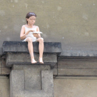 Скульптура "Ласточка" располагается на стене одного из зданий комплекса Клементинум. Представляет из себя сидящую девочку, в руках она держит фигурку из бумаги. То ли самолетик, то ли птичку. Это любимая пражанами скульптура "Ласточка". Автор - Магдалена Поплавская. Скульптура была выполнена для Выставки работ студентов художественно-промышленной школы.