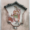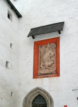 Над входом в церковь св. Георгия мраморный барельеф, изображающий святого Христофора. Житие святого гласит, что он был римлянином огромного роста, изначально носившим имя Репрев. Он работал на речной переправе и, отыскав святого отшельника, спросил его, каким образом он может служить Христу. Отшельник отвёл его к опасному броду через реку и сказал, что большой его рост и сила делают его отличным кандидатом, чтобы помогать людям пересекать опасную воду. Он начал перевозить путников на своей спине.