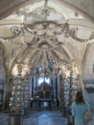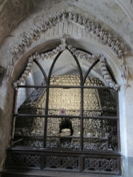Постепенно кости изымались из земли и складывались в огромные пирамиды внутри церкви в виде колоколов. Впоследствии, в 1710 году, резчик Ринт из отбеленных им костей сложил чаши, крест, герб рода. Особенно впечатляет центральная люстра из костей человеческого скелета.