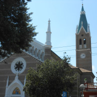 Движение салезианцев зародилось в 1859 году и быстро распространилось по всей Италии. К началу ХХ века в Римини образовалась своя община последователей Джованни Боско, главного идеолога ордена. Уже 17 ноября 1912 года был освящен первый камень в фундаменте будущего салезианского храма. Проект выполнил болонский архитектор Джузеппе Гуаланди в нео-готическом стиле. При строительстве стен использовались материалы двух цветов: светло-терракотовый кирпич и белый камень, выложенные чередующимися полосами. Вход в храм обрамлен многослойной аркой из белого мрамора, внутри которой – яркая многоцветная мозаика с ликом Иисуса.