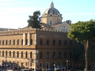 В западной части Площади Венеции располагается построенный, в соответствии с проектом Леона Батиста Альберти, Дворец Венеции, предоставленный к услугам венецианского посольства на территории Рима.