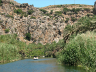 Будете на пляже Превели, а вы там наверняка будете, если поедите на Крит, обязательно прогуляйтесь вглубь вдоль реки. Тропинка для прогулки обозначена колышками с натянутой веревкой. Не стесняйтесь почаще перешагивать веревочку и углубляться в заросли. Именно в таких местах вы найдете очень красивые виды. Перешагнув "границу" в очередной раз мы вышли к реке в том месте, где отдыхала толпа черепах. Идите по тропе дальше. Будет место, где можно погулять прямо по мелководью речки и по гонять косяки мелких рыб. И захватите с собой маску-возле больших камней, где уже по глубже, я увидел очень крупных рыб (действительно крупных) которые медленно и лениво от меня удалились вглубь. Жаль был без маски и камеру подводную оставил с вещами. Было бы здорово по тихому нырнуть, посмотреть и снять больших рыбешек.