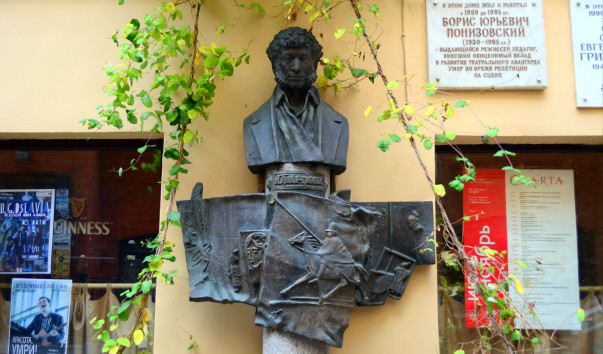 На территории легендарной "Пушкинской 10" установлен памятник Пушкину-художнику — единственный в своём роде. Бюст поэта расположен на гранитной колонне и окружён барельефом с его рисунками — помимо обширного литературного наследия, А.С. Пушкин оставил огромное графическое наследие: свыше нескольких тысяч рисунков, большинство из которых являются портретными изображениями и художественными набросками, сделанные им на страницах черновых рукописей и лишь изредка - на отдельных листах, в альбомах друзей, открытках и письмах.