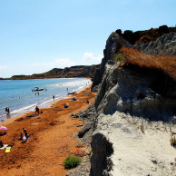 Собираясь сюда на отдых, обязательно захватите с собой фотоаппарат, ведь вам обязательно захочется запечатлеть необыкновенно яркий, насыщенный, красно–желтый песок и белые глиняные скалы. На пляже установлены зонтики и шезлонги, которыми вы сможете воспользоваться абсолютно бесплатно.