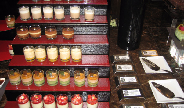 На 55 этаже отеля Marina Bay Sands расположен ресторан Club55. Утром и в обед он доступен только для гостей отеля Однако, после 8 часов вечера открываются двери для всех желающих.Необычность в том, что гостям предлагают в виде шведского стола 12 сортов элитных сыров и около 40 невероятно вкусных десертов ручной работы, чай и кофе, а так же различные виды шоколада. В зале приглушённый свет, а панорамные окна открывают потрясающие виды ночного Сингапура. Прямо над головой видно дно бассейна Инфинити на крыше отеля. Бронировать столик нужно заранее.