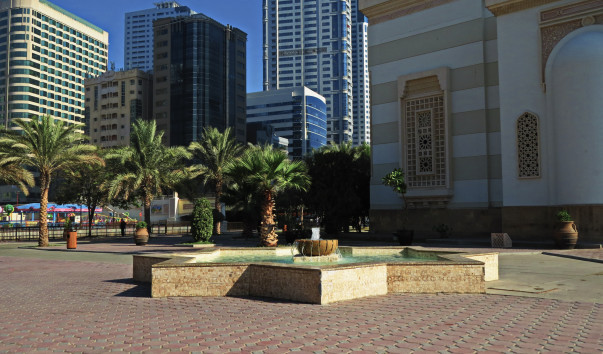 Фонтан выполнен в форме октаграммы, Руб аль-хизб- мусульманский символ, который изображается в виде двух наложенных квадратов, образуя таким образом восьмиконечную звезду. Символ используется как маркер конца главы в арабской каллиграфии. Он изображается в виде двух наложенных друг на друга квадратов. Подобные фонтаны с символом Руб аль-хизб часто встречаются у мечетей и общественных зданий ОАЭ.
