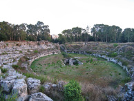 Древнеримский амфитеатр в Сиракузах был самым большим на Сицилии, его размеры впечатляют: 140 на 119 метров. Построен в конце I века до н. э. во время правления Октавиана Августа. Для своего 22-векового возраста он сохранился довольно неплохо: уцелели внутренние переходы, по которым на арену выходили гладиаторы и дикие звери, зрительские трибуны, а также места для высокопоставленных гостей. Остались даже античные надписи, выбитые в камне и упоминающие одного из магистратов – создателей амфитеатра. Это уединенное место стоит посетить обязательно, ведь римский театр в Сиракузах считается третьим по величине во всей Италии, уступая только Колизею и арене Вероны.