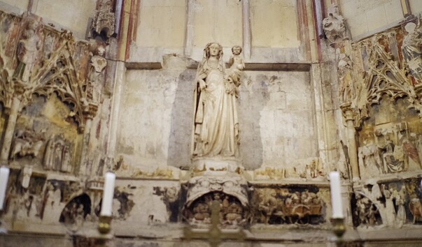 В соборе Святых Юста и Пастора можно увидеть старый полихромный скульптурный каменный алтарь XIII века, обнаруженный в 1847 году, но отреставрированный только с 1954 года. В алтаре, в центре группы и независима от остальной части композиции, возвышается статуя Богоматери с Mладенцем из алебастра Она имеет высоту 1,80 м, выполнена в стиле Мастера Рьё и, вероятно, датируется третьей четвертью XIV века. Документация исторических памятников подтверждает гипотезу о даре этой скульптуры от монсеньора Франсуа де Конзье , архиепископа Нарбонны с 1391 по 1433 год.