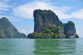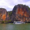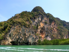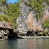 Прямо по курсу - остров Панак (Koh Panak). Зто одно из самых необычных и впечатляющих мест залива Пханг Нга. Представляет собой крупный скалистый остров, длиной 3.5 км. и шириной 700 метров, в глубине которого находится без малого десяток озер, соединённых с морем узкими сквозными пещерами.