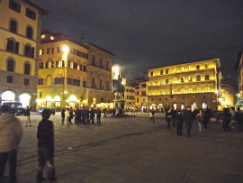 Площадь Синьории вечером. Памятник Казимо Первому.
