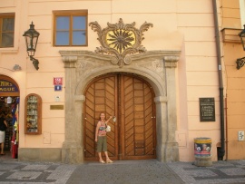 Впервые символ солнца на доме в Целетной улице упоминается в 16 веке, когда его заказал вмонтировать писарь из мещанского рода Дрдаков. В старых записях появляются упоминания этого дома, как "Золотого солнца", что говорит о первоначальном более ясном сиянии. Говорят, его лицо почернело во времена императора Рудольфа II, когда в нем, вероятно, состоялась встреча исследователей эзотерических наук. Известнейшей жительницей дома «У Черного солнца» в 18-19вв. была оперная певица Йозефина Гампахова, супруга композитора Франтишека Ксавера Душека. Семья известна дружбой с Моцартом, который для Йозефины написал несколько оперных арий.
