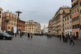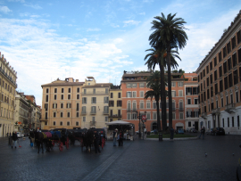 История Испанской площади начинается в XVI веке, когда здесь строили первые гостиницы и лавки для гостей Вечного города. Испанской площадью стала в начале XVII века, когда правительство Испании приобрело дворец Мональдески, расположенный на этой площади.