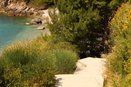 Очень живописный "дикий" пляж, на западной окраине Сутоморе. Крупная галька (я плавала в резиновых тапочках-коралках) и очень чистая вода. Здесь даже ловят рыбу)) рыбки кусачие - поняла это, когда однажды поплавала без тапочек))