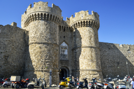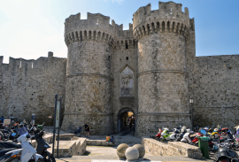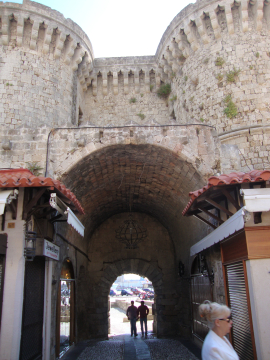 Вид, конечно, впечатляет. Но сам факт посещения именно этик ворот в стене замка - так для галочки. Ну, весь людской поток с площади Гиппократа и ул. Сократа сюда сходится. Плюс здесь огромная парковка и туалет. Впрочем, места на парковке свободные были только к вечеру. А туалет, наоборот, в это время уже закрывался.