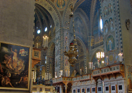 Особенно интересный вид на базилику открывается с северо-западной стороны.Купола базилики придают ей сходство с византийскими церквями, а несколько небольших колоколен напоминают турецкие минареты.
