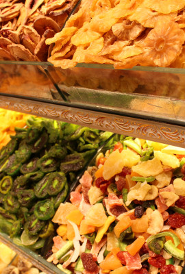 Крытый душный базар. Цены кусаются, даже если торговаться.