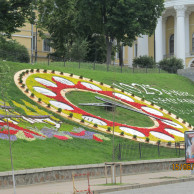 Скульптурная композиция "Цветочные часы" в расположена в городе Киеве, на площади Независимости, и имеет подобные аналоги в других городах Европы, однако по размеру значительно их превосходит. Общий диаметр композиции составляет чуть более 20 метров, а диаметр циферблата равен 18 метрам.