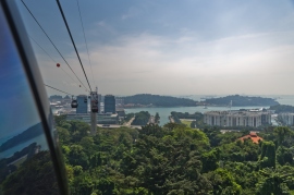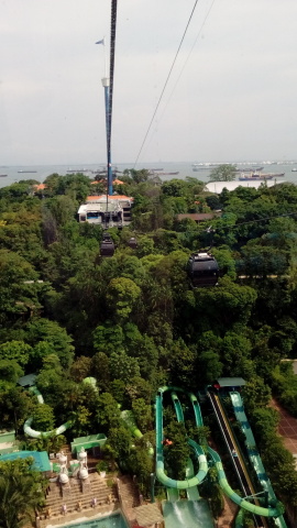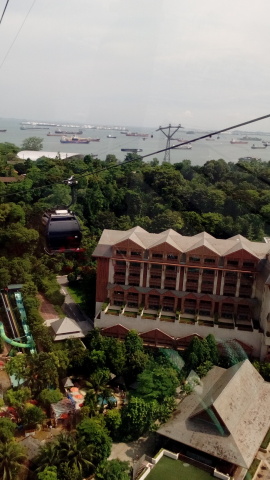 Добираемся до канатной дороги : сначала на метро до станции (Harbour Front), затем пешком до кассы канатной дороги около 10-15 минут. Небольшая очередь в кассе и ты стоишь у лифта, который поднимет на "стартовый этаж" фуникулера. Билет "стандартный" включает в себя: дорогу на остров, две линии канатки вдоль острова, дорогу с острова. Открывающийся вид (высота 91 метр) - захватывает дух: бухта, небоскребы и жилые кварталы Сингапура, а с другой стороны виден практически весь остров с отелями, парком развлечений, аттракционами, пляжами и буйной тропической растительностью!!! Кабинки рассчитаны на 6 человек. Но так-же есть VIP-кабинки (украшенные стразами Сваровски).Канатная дорога работает с 8-00 до 22-00, но посадка в вагончики до 21-30.