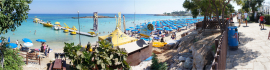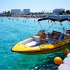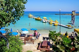 Чистый желтый песок, чистейшая прозрачная вода - невероятная красота! Пляж оборудован шезлонгами и зонтами. Аренда 2 шезлонгов и зонта на 1 день составляет 7.5 евро. Каждому посетителю выдают чек, на котором указан логин и пароль для доступа в интернет. Чек действителен в течение дня, так что можно уходить с пляжа, например, на обед или сиесту, а затем возвращаться и занимать любой свободный шезлонг и зонтик. Пляжным сотрудникам покажите чек об оплате, и не будет никаких проблем. До пляжа легко добраться на общественном транспорте из Айя-Напы и отдаленных районов Протараса. К 11:00 часам все шезлонги и зонты уже заняты, так что имеет смысл приходить пораньше. Пляж расположен на "нижнем уровне" относительно отельной линии, то есть к нему нужно спускаться по степеням. Соответственно, чтобы выпить коктейль на пляже или съесть мороженое, нужно подняться по ступенькам и сходить в пляжное кафе-ресторан - там есть отдельная секция товаров "с собой" на вынос. На вынос приготовят все, что душе угодно: и сытные блюда, и сладости, и напитки. Очень красивая бухта! Отдыхать на этом пляже - одно удовольствие!