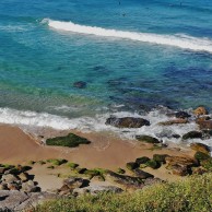 Не смотря на то, что с солнышком мне не очень повезло, пляж выглядел и в такую погоду весьма достойно. Также понравилось, что для серфингистов отгорожена полоса пляжа и, значит, никто никому не мешает. Плюс пляж чистый, песок даже в течение дня несколько раз взрыхляют и собирают мусор, которого как бы нет. Кроме того, можно разместиться на лужайке, а не на песке (кому что нравится) или на камнях (они немного дальше и среди них много топлесс).