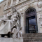 На большой лестнице, обеспечивающей доступ в библиотеку мы видим скульптуру сидящего короля Кастилии и Леона, Альфонсо X Мудрого. Он был одним из немногих королей, широко и неустанно пропагандировавших испанскую литературу. Он сотрудничал с латинскими, ивритскими и исламскими интеллектуалами, чтобы создать Толедскую школу переводчиков, которая в значительной степени дала начало прозе на испанском языке. Именно поэтому он стал более известен под своим прозвищем Мудрый.