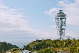 После храма дорога ведёт к ещё одной очень интересной достопримечательности - маяку-обсерватории Sea Candle (Морская свеча). С маяка открывается потрясающий вид на остров, мост и песчаные пляжи Камакуры. Сам маяк днём выглядит не очень примечательно, но симпатично подсвечивается в ночное время суток. Маяк здесь был с незапамятных времен, однако только 10 лет назад из него сделали объект, достойный интереса окружающих. Кроме того, отдельного внимания заслуживает относительно небольшой, но очень красивый ботанический сад на прилегающей к маяку территории.