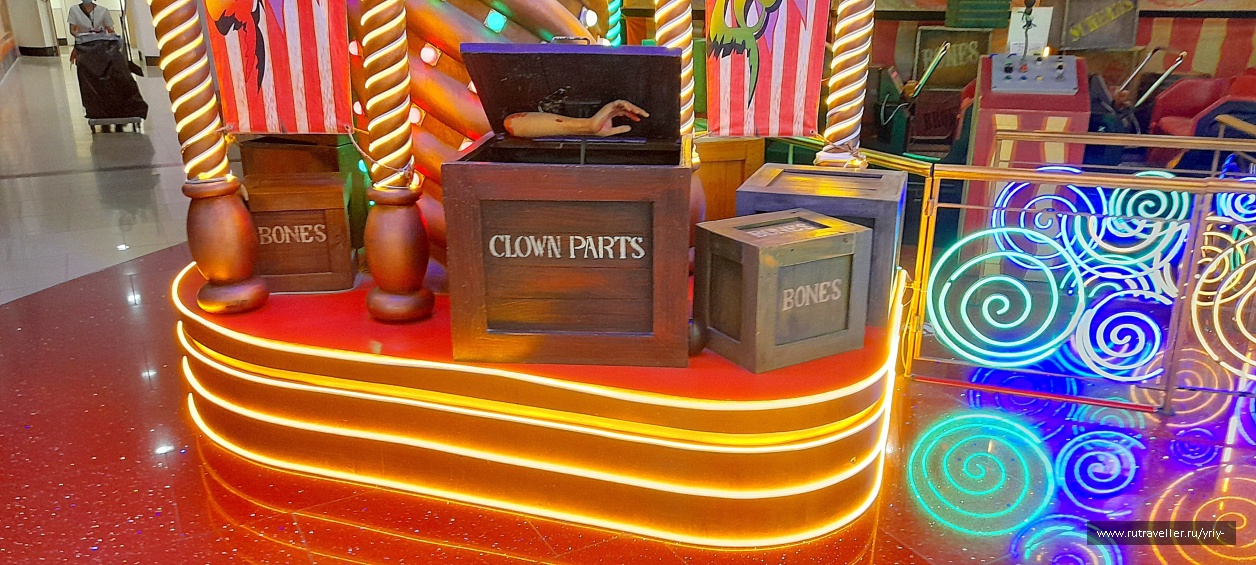 Кроме того, в комплексе расположено множество разнообразных ресторанов, кафе, кинотеатр и зона игровых автоматов для детей.