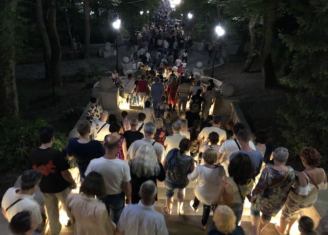 Днём было очень жарко, вечером просто довольно тепло. Народ был благодушен и доволен. Все всем улыбались, многие говорили: "А у вас тут ничего, в Железноводске". Учитывая, что до начала фестиваля многие интересовались, а это вообще где, очень приятно, что столько людей стало чуть лучше разбираться в отечественной географии.