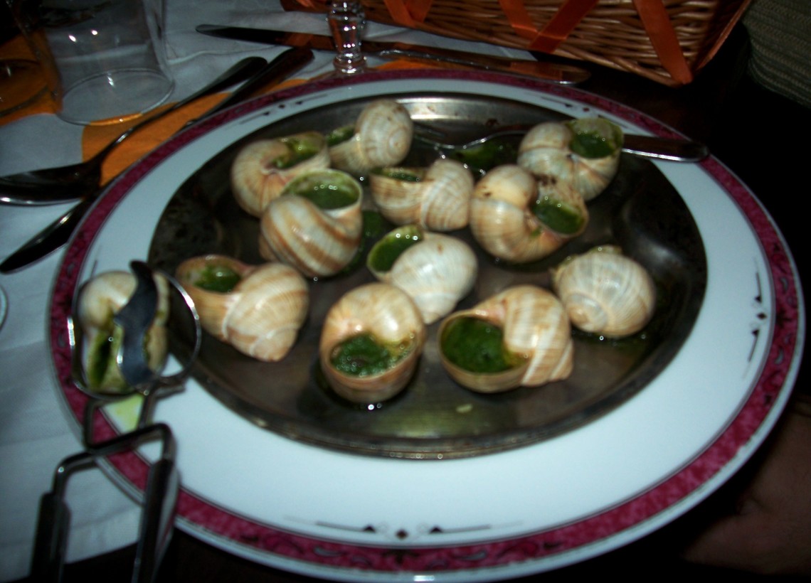 А вот улитки во французском ресторане мне ну совсем никак. Когда-то довелось отведать этот деликатес в Волгограде. Признаюсь честно – очень понравились. А вот в ресторанчике в Латинском квартале Парижа – подача как-будто бы поизощрённей. Но по вкусу – залили эти самые улитки каким-то зеленым травяным соусом.