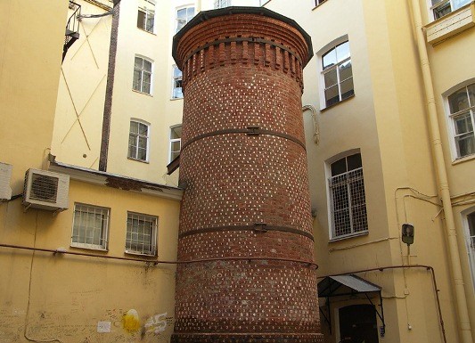 Так называемая Башня грифонов – это всего-навсего часть кирпичной трубы котельной, которая находится во дворе одной из старых аптек Санкт-Петербурга, аптеки доктора Пеля.