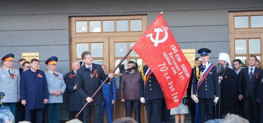 В этой заметке я расскажу о музее "Боевая слава Урала" в г.Верхняя Пышма , который мы посетили нашим дружным классом. Музей был открыт 9 мая 2013 года. Музей уникальный, интересный. Фотоотчет можно посмотреть по ссылочке : http://www.rutraveller.ru/photo/previewAlbum?id=309506 . На фото Генеральный директор УГМК Андрей Анатольевич Козицын на открытии музея с копией №5 Знамени Победы.Запись перенесена из Клуба RuTraveller.