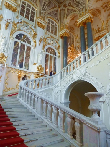 О величии и размахе замысла Растрелли сейчас свидетельствуют лишь несколько интерьеров. Среди них величественная Парадная (Иорданская) лестница.