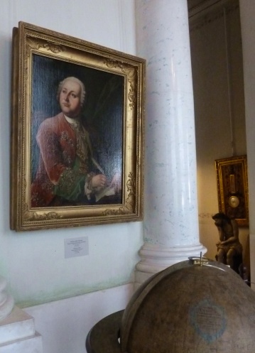 Своеобразный кабинет Петра I с его парадным портретом на шпалере.