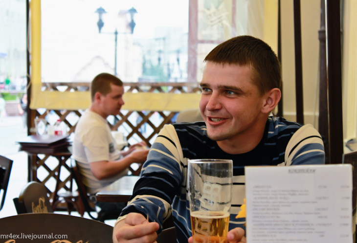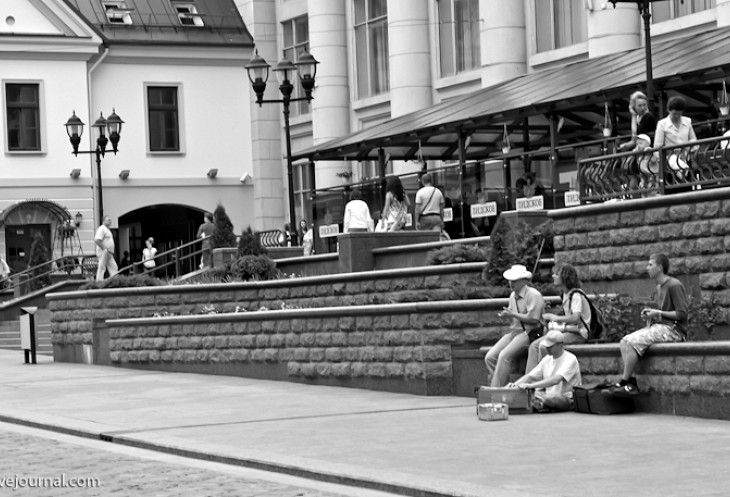 Прогуливаемся по Советской (пешеходной) улице. Ее называют "гродненским Арбатом". В одном из кафе решили выпить пивка.