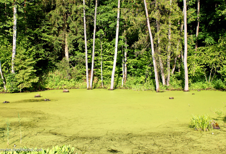 Рядом расположилось красивое зеленое болотце.