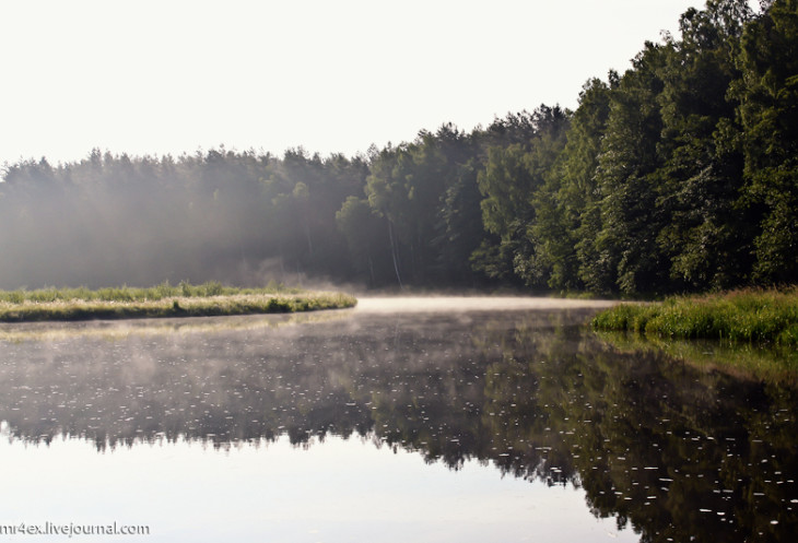 Дело было рано утром, поэтому над водой красиво лежал густой туман.