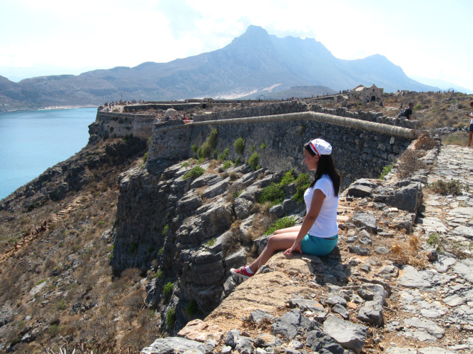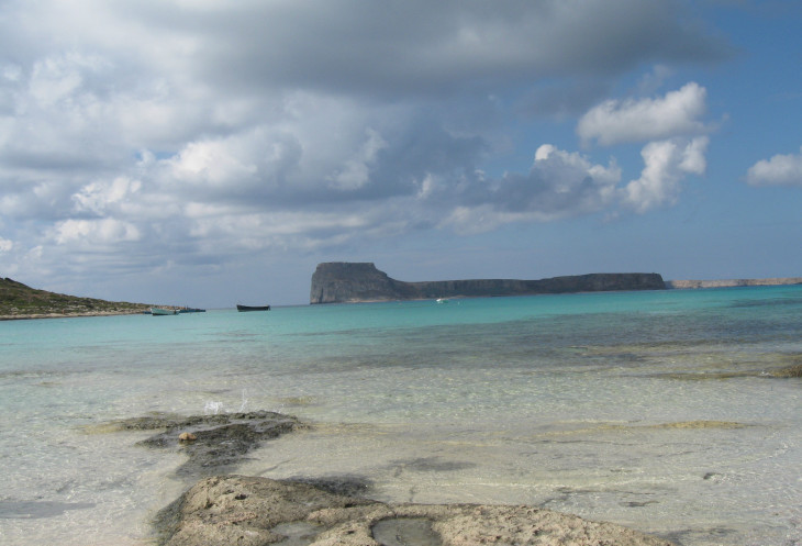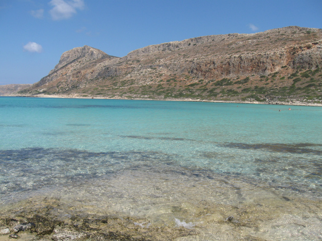 Снова грузимся на паром и через 15 минут паром бросает якорь на Балосе. Пляж-сказка. Песок в полосе прибоя ярко розовый, а за тем, как вода меняет оттенки голубого цвета в зависимости от глубины, от солнца, ветра, облаков, можно наблюдать бесконечно…