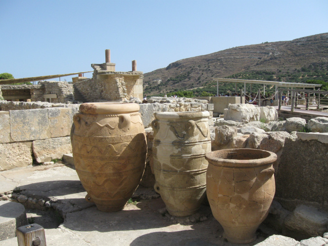 Еще в очереди за билетами можно объединиться в группу 10-12 человек и воспользоваться услугами гида или «нелегально» присоединиться к любой экскурсии. Мы бродили по руинам самостоятельно, путеводителем запаслись заранее, да и в интернете информации много. Все объекты на территории дворца снабжены пояснительными табличками на греческом/английском языках.