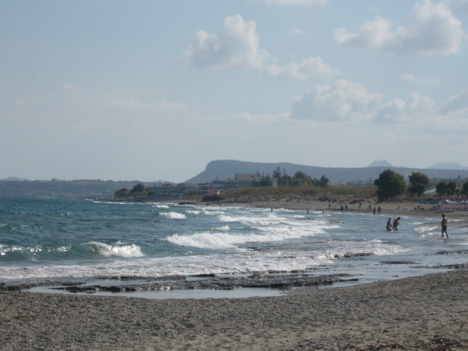 Через 10 минут въезжаем в поселок Платанос и по плавному серпантину попадаем на парковку пляжа Фаласарна. Широкая длинная полоса очень крупного песка (или это уже мелкая галька), бесконечная вереница пологих волн. Волны на мелководье становятся круче, обзаводятся кудрявыми барашками и падают на берег с мягким рокотом. Еще чуть ветреней и находится в воде уже станет опасно, а сейчас катание на волнах доставляет непередаваемое удовольствие.